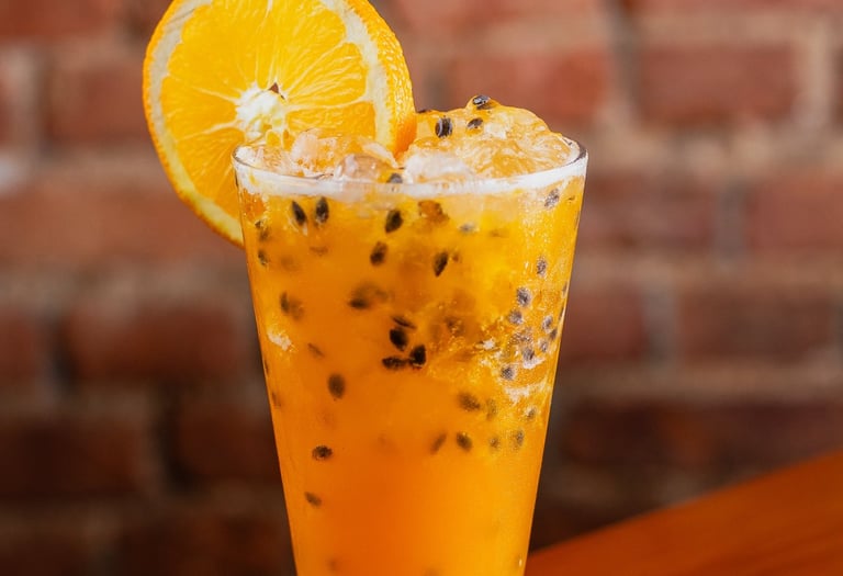O resultado é um drink tropical, levemente adocicado, com notas intensas de manga e um aftertaste energético que te mantém ligado.