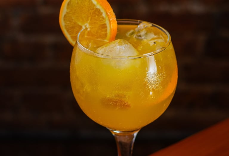 Leve, borbulhante e com cor de pôr do sol. O Aperol Spritz mistura espumante, Aperol e água com gás, com uma fatia de laranja pra arrematar.